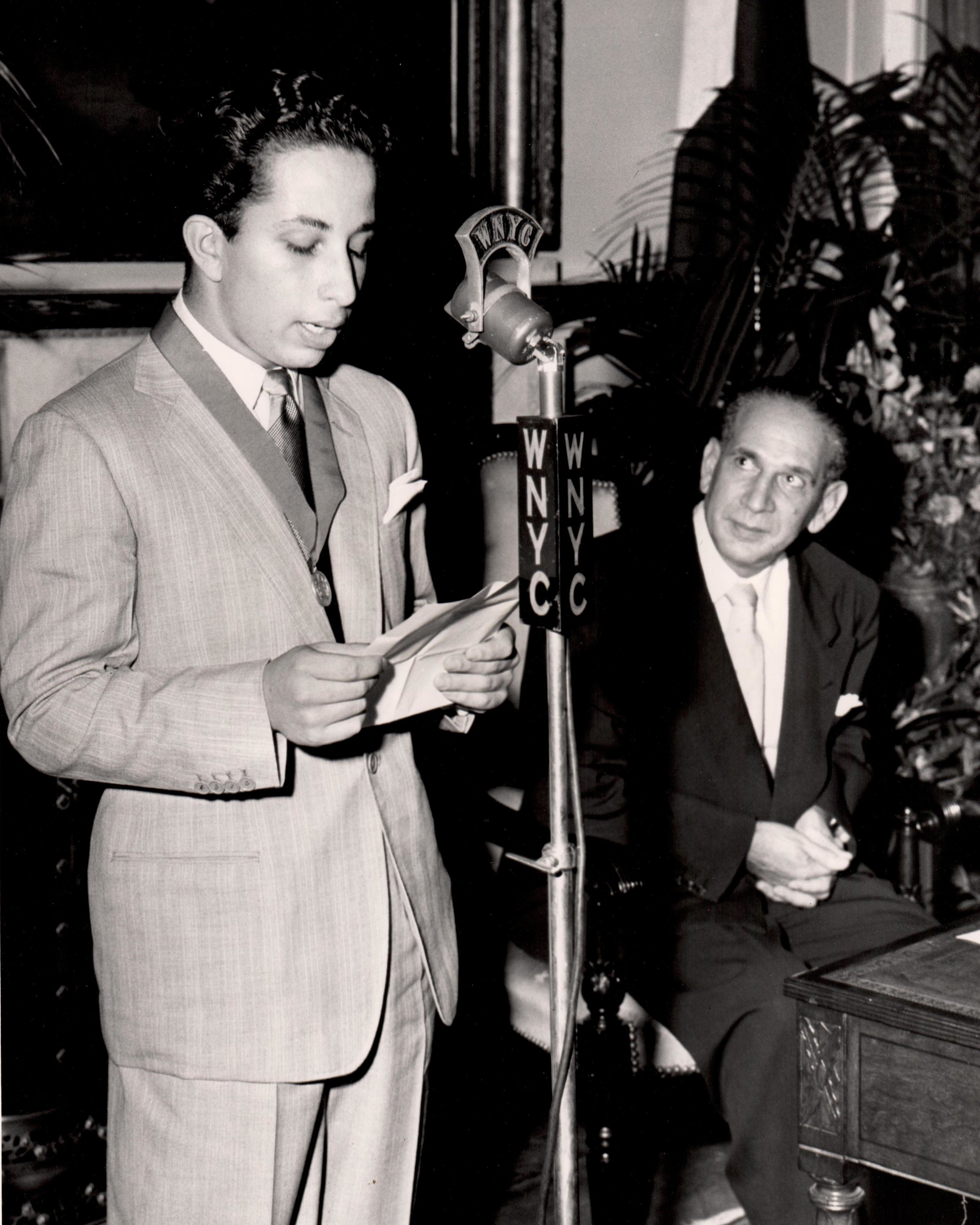 Mayor Impellitteri awarding King Faisal II with the New York City Medal of Honor inside City Hall’s reception chambers