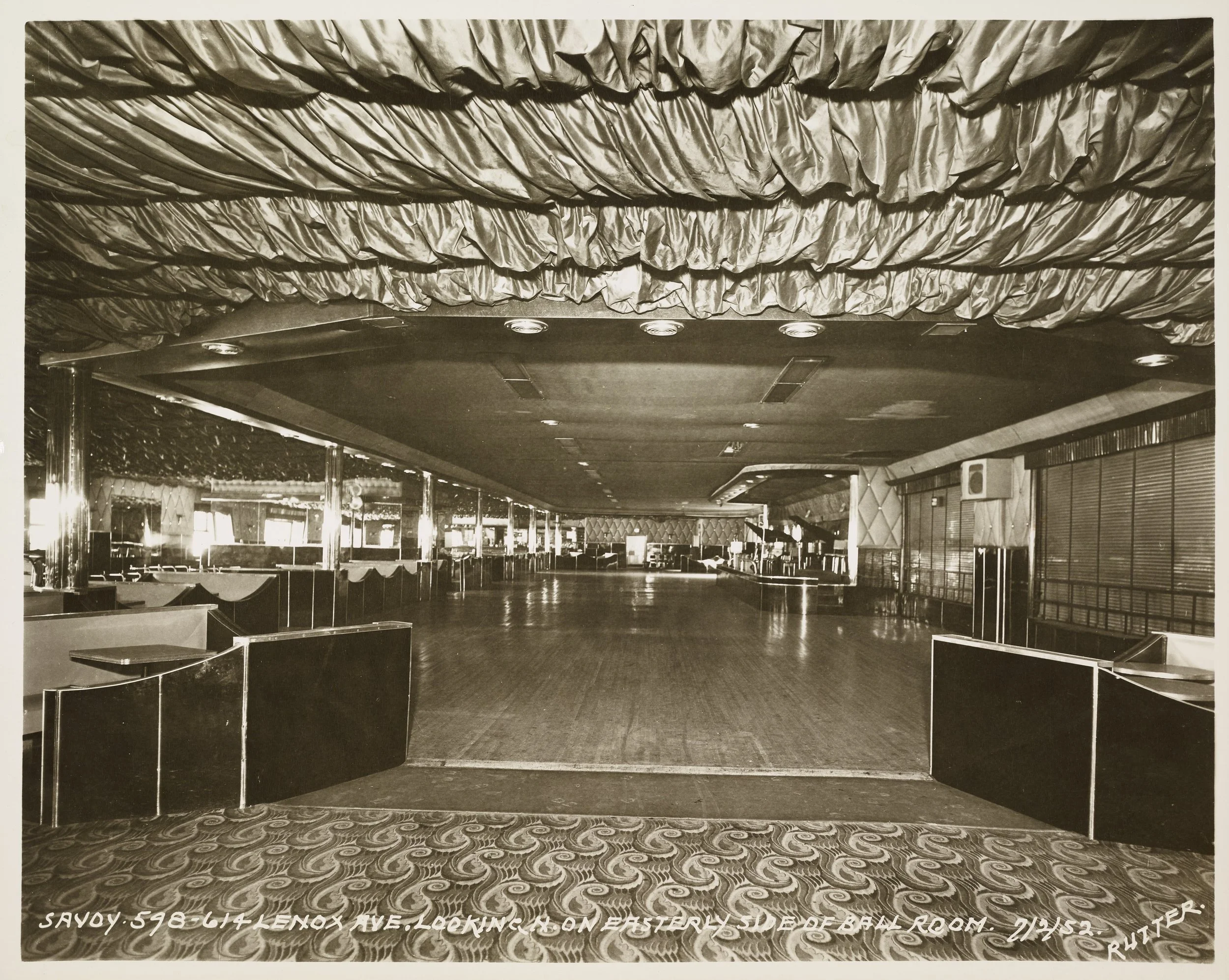Savoy Ballroom, 598-614 Lenox Avenue, Manhattan, Easterly side of Ballroom, July 2, 1952. Photographer: Rutter Studio. Condemnation photograph collection. NYC Municipal Archives.