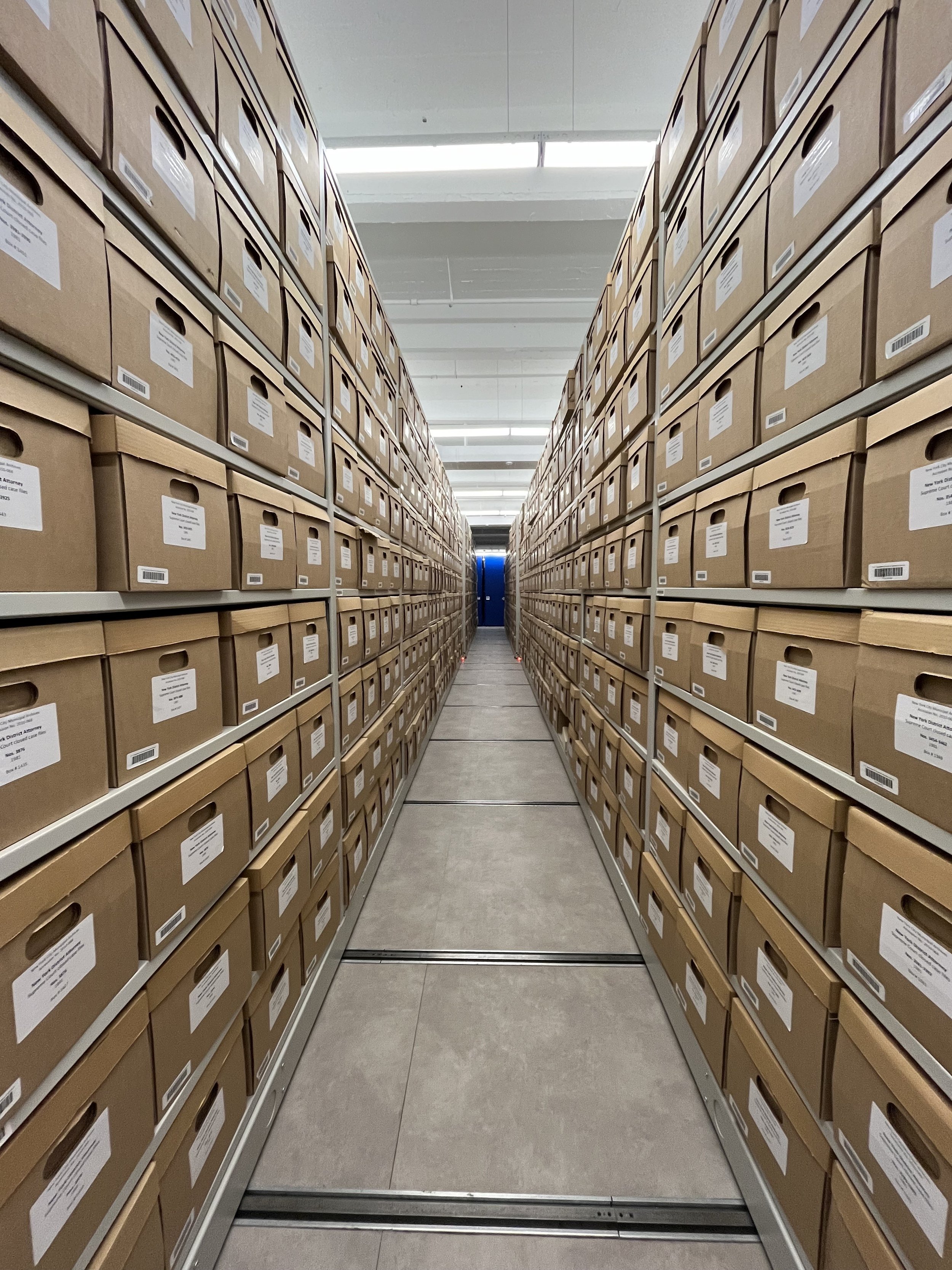 Municipal Archives storage area, Industry City, Brooklyn, 2024. NYC Municipal Archives.