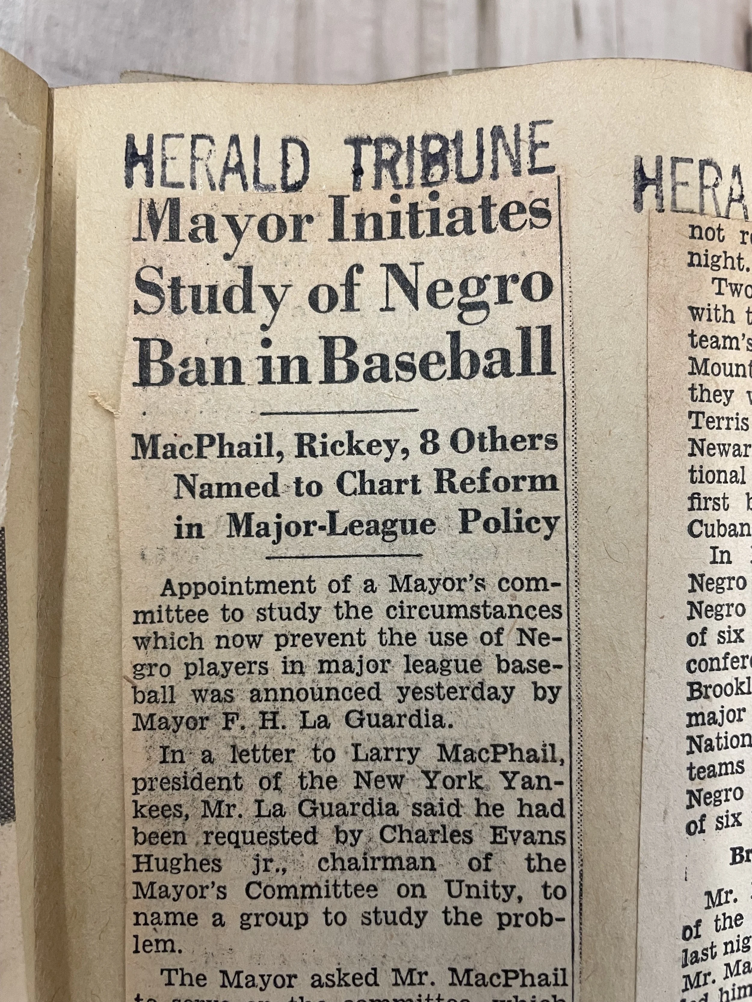 Announcement of the Mayor’s Committee on Baseball, Herald Tribune, August 12, 1945. Mayor LaGuardia scrapbooks, NYC Municipal Archives.