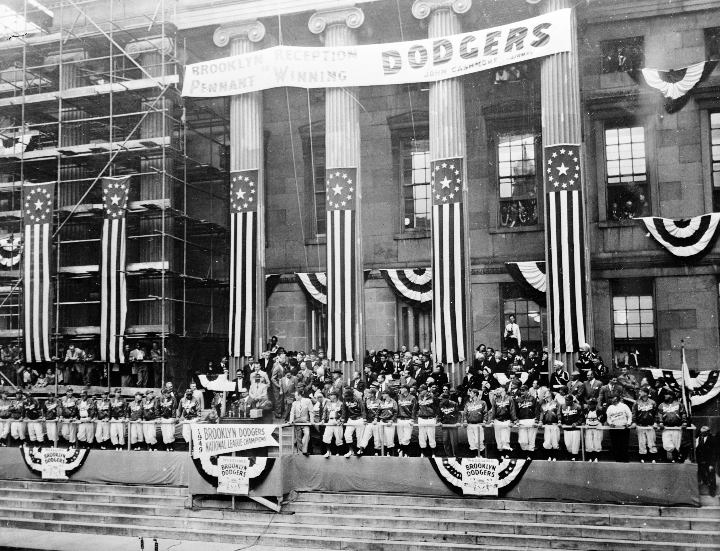 “Brooklyn Borough Hall Reception for Pennant Winning Dodgers,” October 1949. Brooklyn Borough President photograph collection, NYC Municipal Archives.