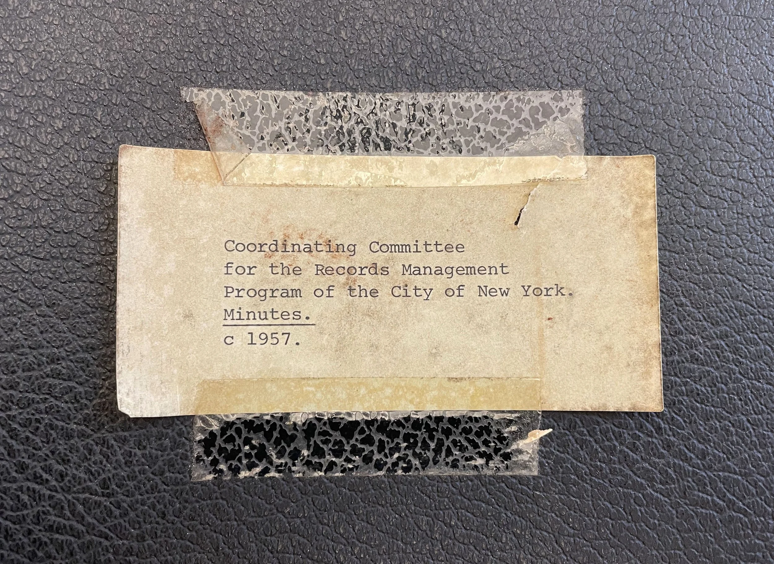 Recently, during an ongoing effort in the Municipal Library to reorganize the collection, librarians turned up a set of records that attest to New York City’s long history of responsible and innovative records management. A binder collecting the 1957 minutes of the Coordinating Committee for the Records Management Program of the City of New York shows how the work we do today at DORIS is remarkably similar to the efforts of the past—both in its challenges and its success.