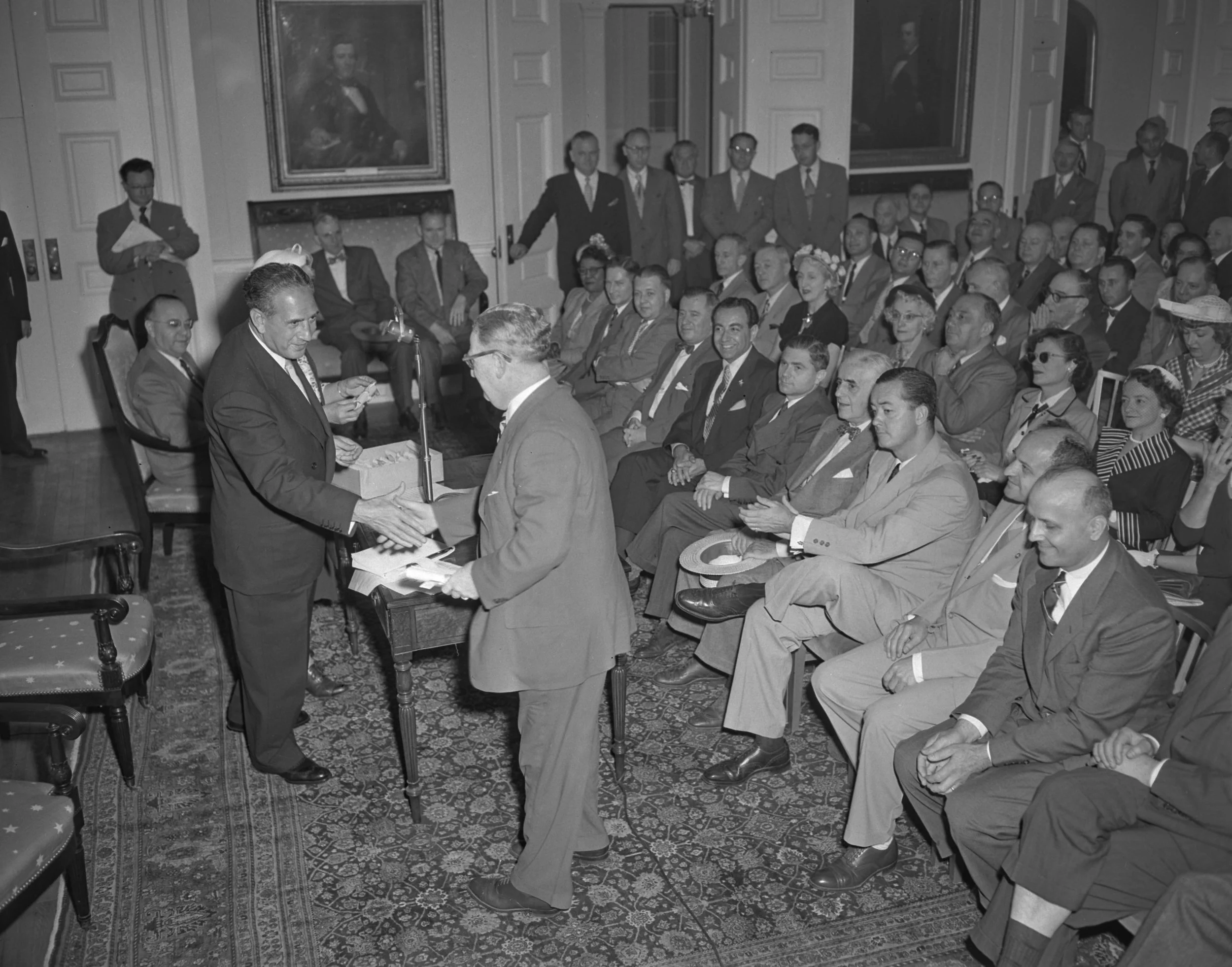 Mayor Vincent Impellitteri bestows merit awards to City agency Record Officers, City Hall, June 24, 1952. Official Mayor Photograph Collection, NYC Municipal Archives.