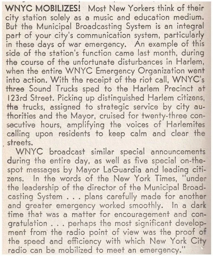 Excerpt from Behind the Mike, September/October 1943 Masterwork Bulletin/WNYC Archive Collections.