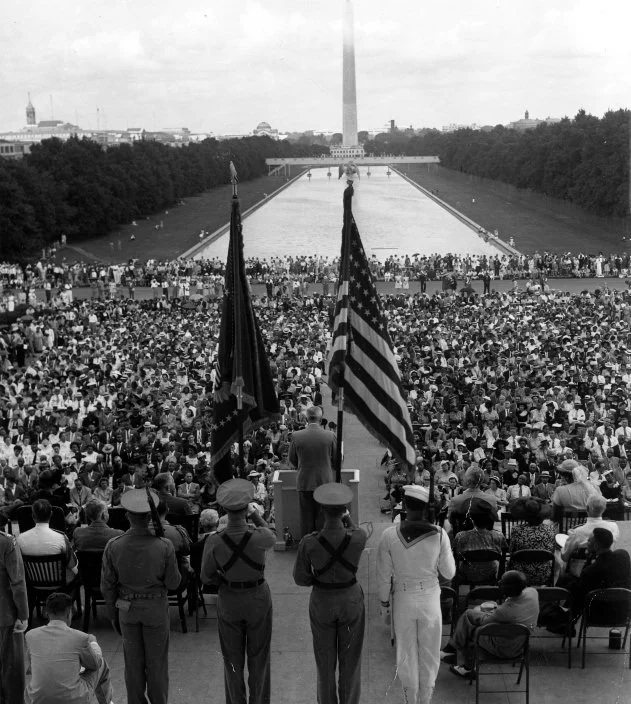 President Truman delivering remarks to the NAACP at the Lincoln Memorial, June 29, 1947. Photo courtesy of the Truman Library.