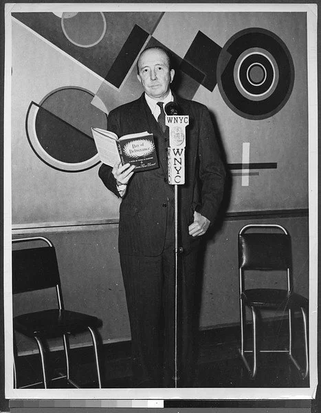 William Rose Benét at WNYC in front of Jon von Wicht’s WPA mural. Photo courtesy of Brooklyn Public Library, Center for Brooklyn History