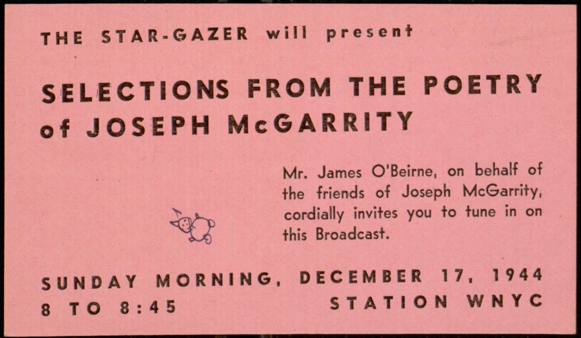 By the end of the 1940s, poetry had become a familiar presence on WNYC. What began in the late 1920s as academic lectures and holiday recitations had expanded into a diverse range of broadcasts: readings by major poets, panel discussions, listener-submitted verse, and even experiments in poetic drama.